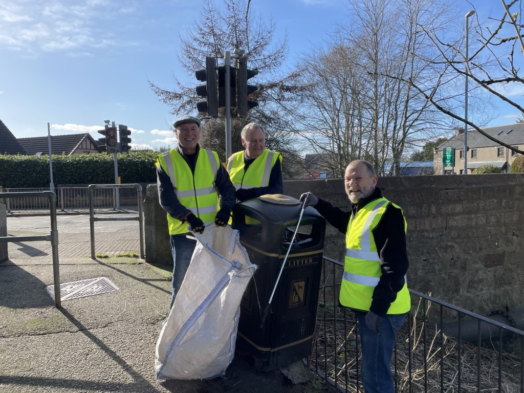 Our recently donated Hi-Vis vests had their first outing recently when some Shed members undertook a litter pick around the bridge over the Black Burn on Main Road. Last month’s stormy weather and resulting higher water flow resulted in lots of debris being deposited on the banks of the burn along with the unfortunately usual scattering of bottles, cans, crisp packets and other detritus.