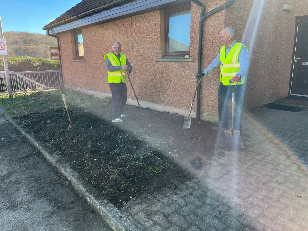 It hasn’t all been inside work however. With the weather improving some shedders recently took the opportunity to exercise their horticultural skills by helping residents of Fechnie Brae sheltered housing in the village tidy up a weed filled garden plot so that it could be refilled with some colourful spring plants. We’ve also helped move some of their garden furniture around and assembled a newly acquired patio set so that residents can enjoy being outside in the fresh air – weather permitting.