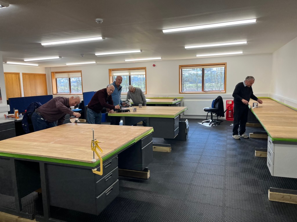 Blackburn and Kinellar shedders have been busy over the past couple of weeks converting some of the metal office desks we inherited from H&R Insurance after taking over the upper floor of their office building in Blackburn Business Park for our Shed earlier this year.