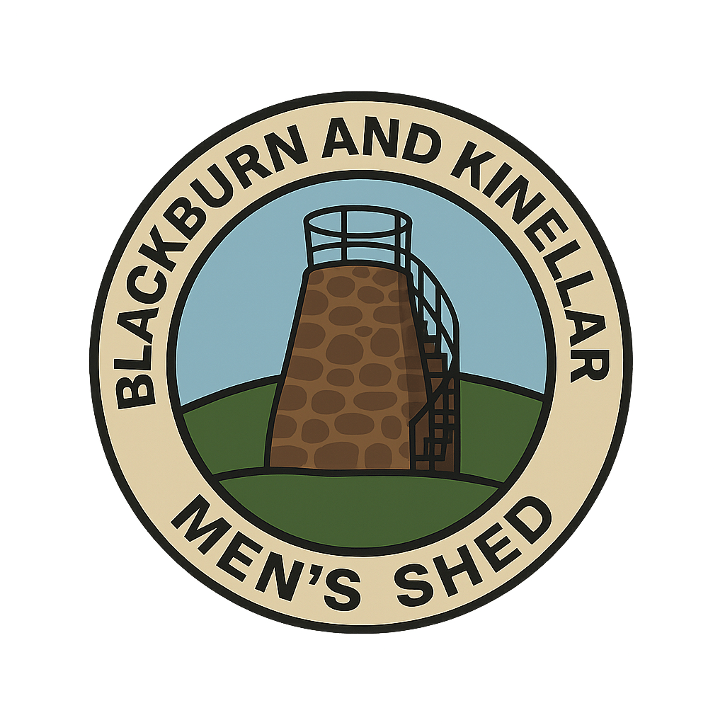 The logo chosen by members for the Blackburn and Kinellar Men’s Shed features an artistic impression of Tappie Tower, a Victorian folly that sits atop Tyrebagger Hill just to the east of the village.